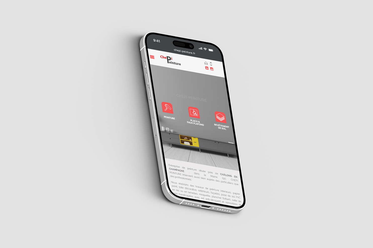 CHEPI Peinture est une entreprise basée près de Châlons-en-Champagne, au service des particuliers et professionnels. Peinture, revêtements de sol, placo, isolation, cloisons : ils assurent des chantiers complets pour transformer, moderniser et valoriser vos intérieurs. Un vrai partenaire multi-travaux, orienté qualité et finition.