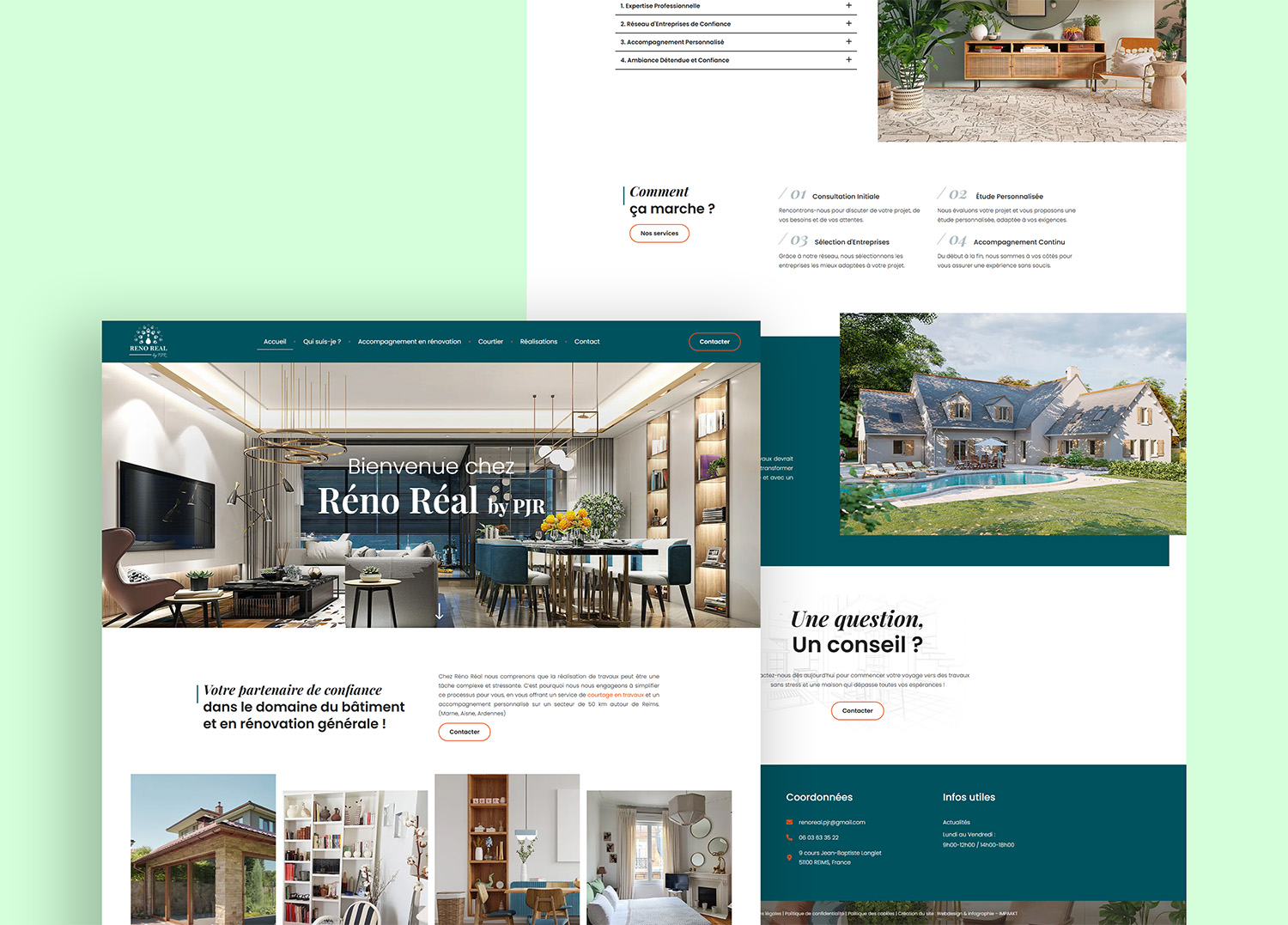 Réno Réal by PJR est un courtier en travaux qui simplifie la rénovation et la construction autour de Reims (dans un rayon d’environ 50 km). Leur force : un accompagnement personnalisé, des entreprises sélectionnées, et une vision “travaux sans prise de tête”. L’objectif est clair : vous faire gagner du temps, éviter les erreurs, et transformer vos idées en projet solide.